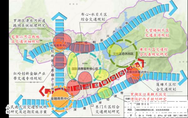 二是从支撑重点产业发展入手,围绕罗湖打造“一主两区三带”新格局,加大清水河、玉龙-布心片区和新秀-莲塘片区对外通道建设力度,尽快解决组团对外及组团间交通不畅问题。