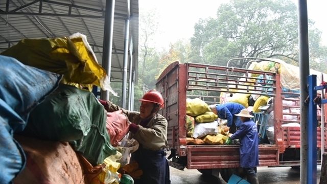 清晨,龙唐村保洁员杨少强驾驶着电动三轮车挨家挨户上门收取农户生活垃圾,他边收边告诉星辰全媒体记者,“不可回收的,我就收集好放到密封式垃圾箱,由转运公司每天运走;可回收的我就进行分类,再集中运到我们白箬铺镇分拣回收总站进行处理。”