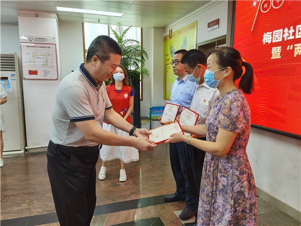 7月6日下午,深圳市罗湖区清水河街道梅园社区党委,在党群服务中心二楼会议室举办“梅园社区第一书记讲党课暨‘两优一先’表彰大会”。