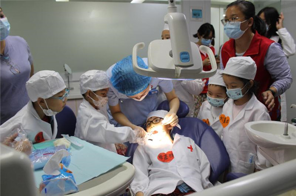 10月25日,罗湖区桂园街道老围社区党群服务中心组织社区青少年到曙光医院开展了一场社会实践体验活动,13位小朋友身穿白大褂,头戴医生帽,手拿口腔镜,为“病人”检查牙齿,当了一回牙医,体验了当医生的快乐,同时也感知到爱护牙齿的重要。3岁的刘嘉乐小朋友给姐姐看完牙齿后对妈妈说:“妈妈,姐姐有蛀牙。我以后也要好好刷牙。”