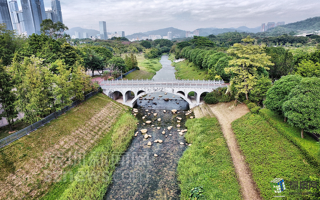 穿园而过的福田河,对中心公园的生态和景观有很大的提升。