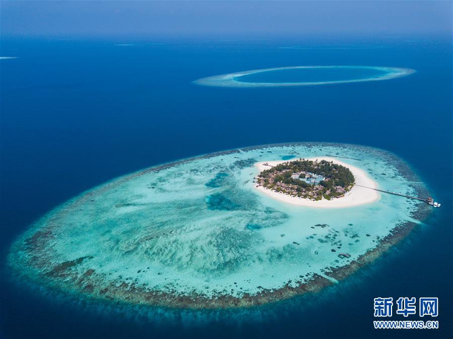 这是2017年12月6日拍摄的马尔代夫瓦宾法鲁岛和附近的珊瑚礁。