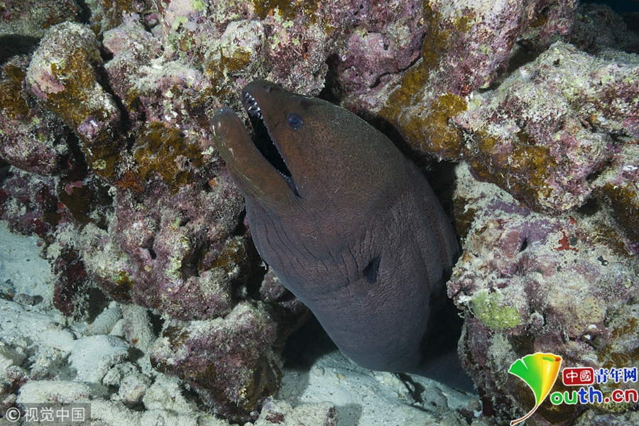 印度洋马尔代夫水域,爪哇裸胸鳝。