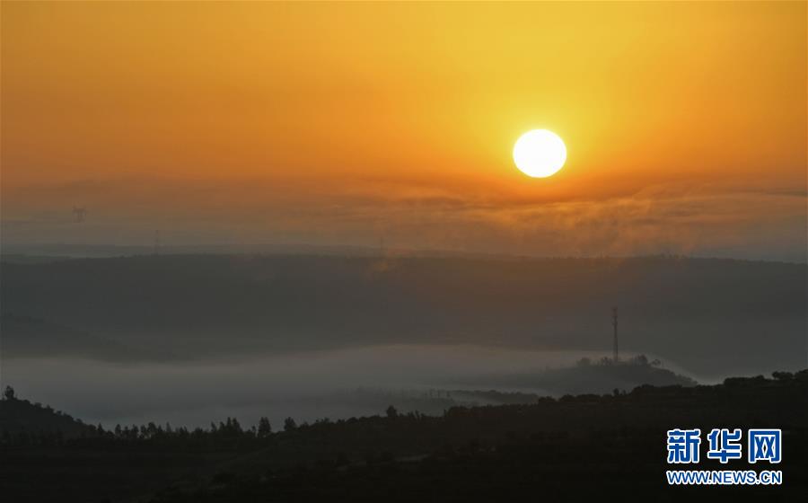 云雾缭绕的宁夏彭阳县金鸡坪梯田公园(7月17日摄)。新华社记者 王鹏 摄