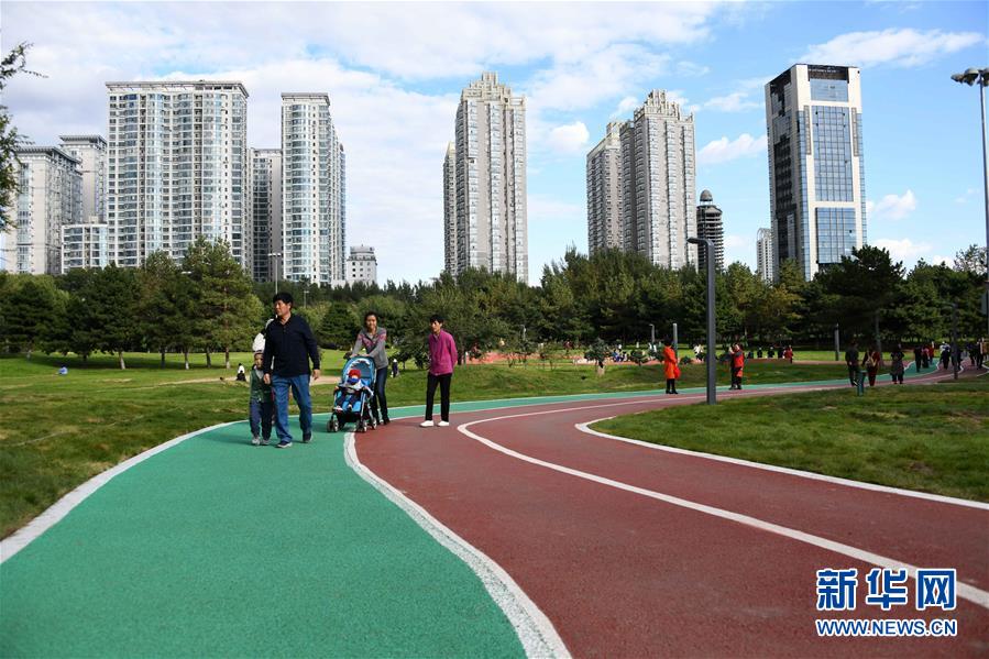 9月25日,市民在湘江公园的跑道上行走。 当日,哈尔滨市湘江公园正式开园迎客。这个集休闲、健身、娱乐、观赏于一体的多功能都市公园由高尔夫球场改造而成,免费对市民和游客开放。 新华社记者 王建威 摄