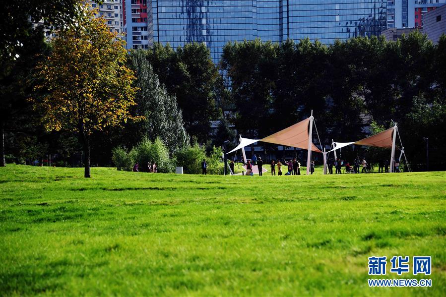 9月25日,市民在湘江公园内游玩。 当日,哈尔滨市湘江公园正式开园迎客。这个集休闲、健身、娱乐、观赏于一体的多功能都市公园由高尔夫球场改造而成,免费对市民和游客开放。 新华社记者 王建威 摄