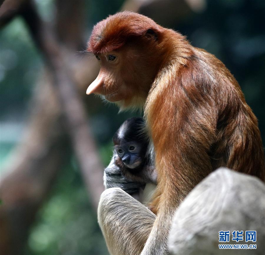当日,广州长隆野生动物世界的珍稀大鼻猴宝宝亮相。它于9月2日在长隆出生。2017年9月,长隆从印度尼西亚成功引进国内首批大鼻猴。 新华社记者 黄国保 摄