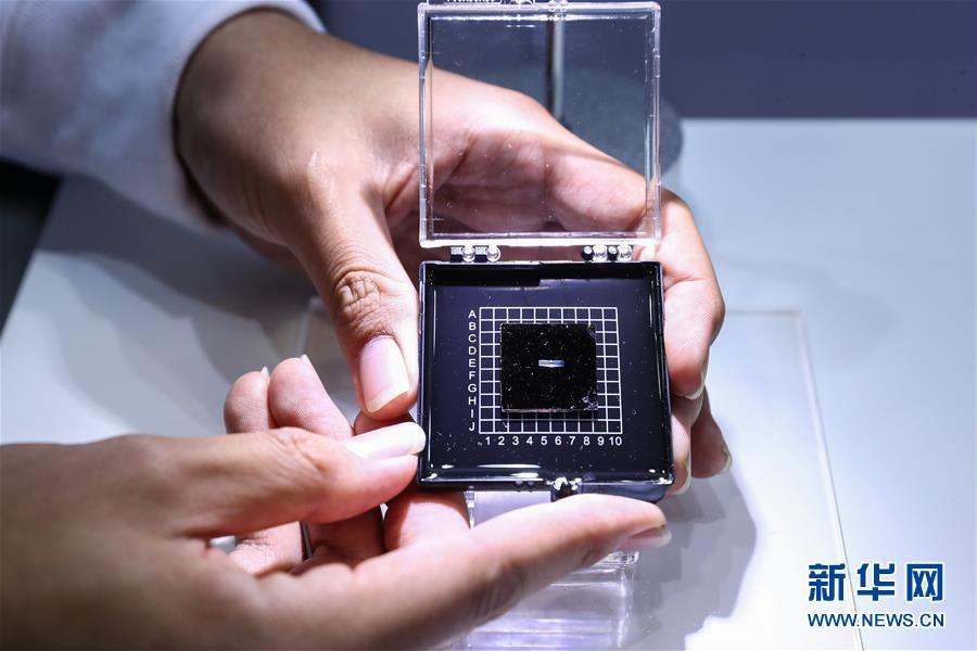 10月8日,工作人员在媒体开放日上展示光子人工智能芯片。