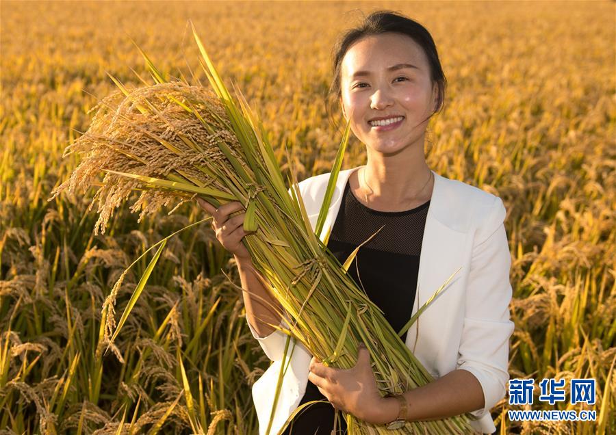 蔡雪捧着刚收割的水稻站在吉林省舒兰市白旗镇的稻田间(9月19日摄)。 金秋十月,位于“黄金水稻带”的吉林省喜迎丰收,全省1200多万亩水稻陆续开镰。 记者在吉林省水稻主产区走访发现,连年丰收的喜人图景背后,蕴藏着许多引人瞩目的“时代之变”。 新华社记者 许畅 摄