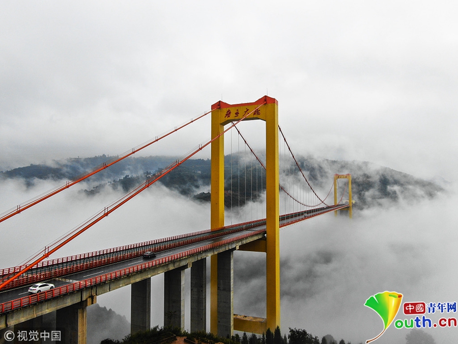 10月9日消息,普立大桥搭建在北盘江上,连接贵州都格与云南普立,北盘江两岸风光十分秀美,两省虽然没有开发专门的旅游线路和风景区推荐,可是秀丽的喀斯特风光总吸引一些专门寻找原生态自然风光的游客。图片来源:视觉中国