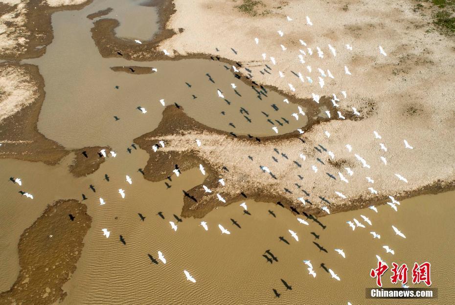 10月4日,在江西鄱阳湖都昌马影湖水域拍摄的白鹭。金秋十月,生活在江西鄱阳湖区的白鹭沐浴秋色,湿地上成群的白鹭成为一道靓丽的风景。中新社发 傅建斌 摄