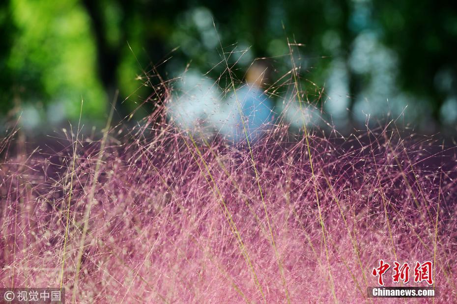 10月6日,江苏南京,市民在江心洲粉黛乱子花田赏花拍照。 图片来源:视觉中国
