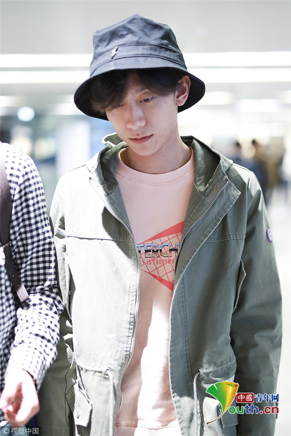 2018年10月14日,上海,张一山抵达上海机场。张一山戴渔夫帽眼袋严重瞬间老十岁, 用手挡脸似不愿上镜。