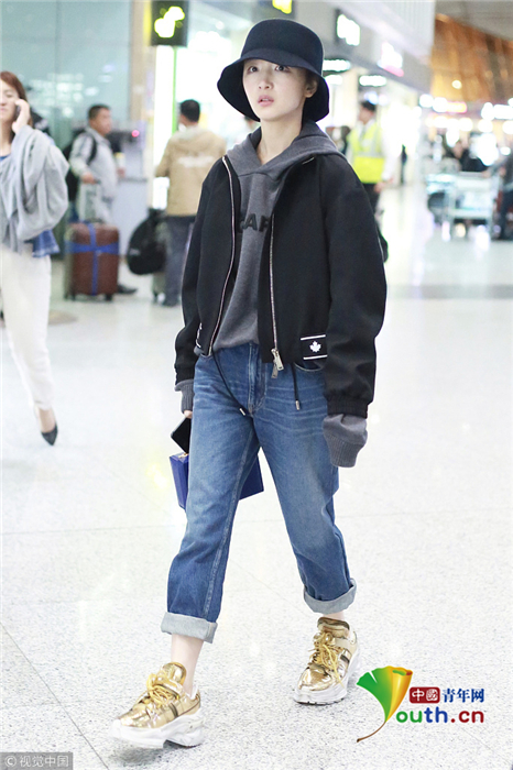 近日,周冬雨现身机场,她穿黑色夹克配牛仔裤,男友风造型显娇小玲珑,渔夫帽遮去大半边脸,简直小朋友既视感!