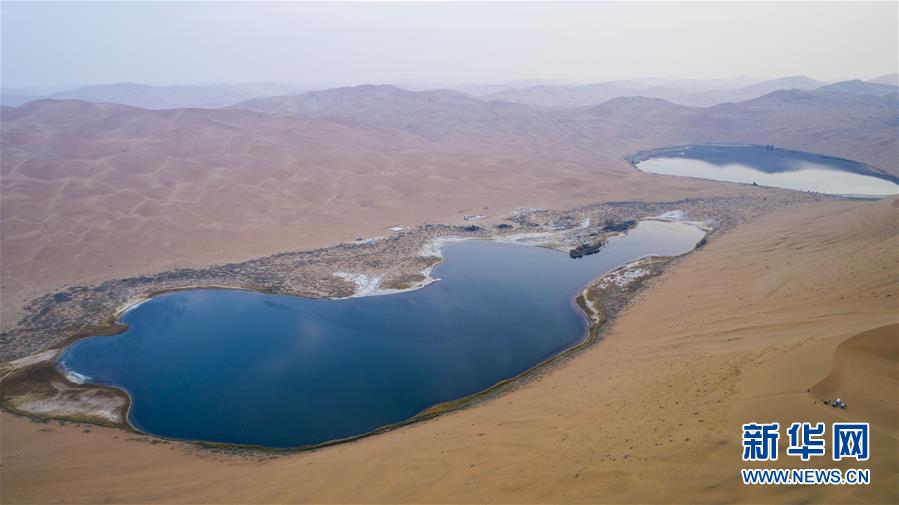 巴丹吉林沙漠中的湖泊,仿佛一颗落在沙中的宝石(10月18日无人机拍摄)。 巴丹吉林沙漠位于内蒙古西部阿拉善盟,是中国第三大沙漠,沙丘起伏的曲线陡变成高耸的沙山,碧蓝的湖泊散落在沙海间。 新华社记者 达日罕 摄