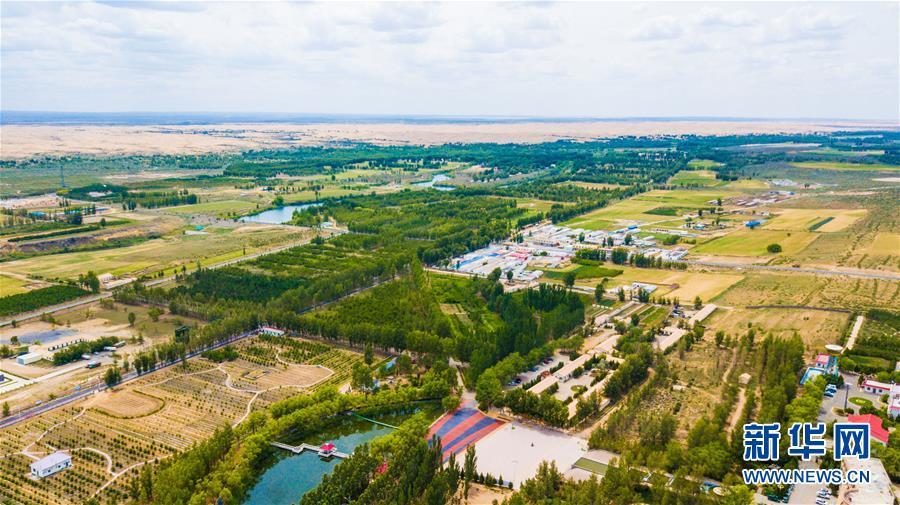 地处库布其沙漠的恩格贝景区(6月8日无人机拍摄)。