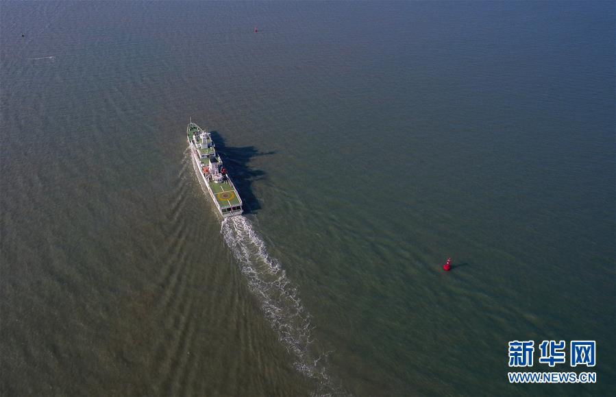 11月3日,“海巡21”轮驶出港口(无人机拍摄)。 当日,随着“海巡21”轮缓缓驶离海口海事监管基地码头,由琼桂粤海事部门共同开展的琼州海峡、北部湾及环海南岛水域跨辖区联合巡航执法活动揭开序幕。 新华社记者杨冠宇摄