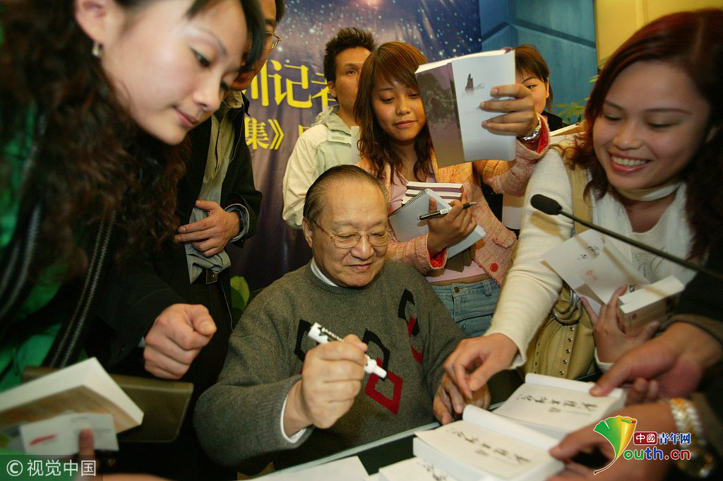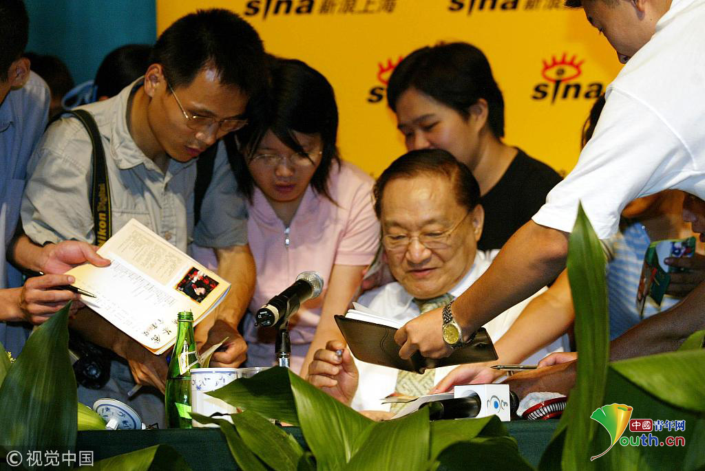 2003年7月25日,杭州,金庸给金迷签名。图片作者:史训锋