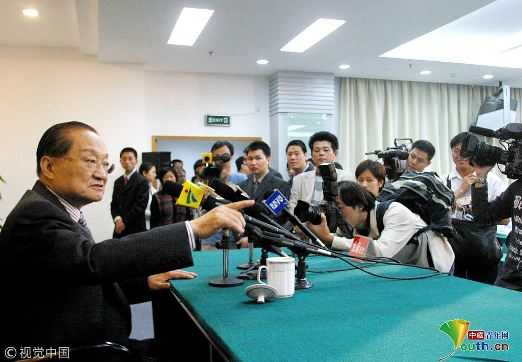 2003年11月15日抵达广州,16日和17日分别参加羊城书市系列活动,并担任广州论坛之“21世纪出版传媒和文化发展论坛”的主讲嘉宾和羊城书迷面对面等活动。现已79岁高龄的“金大侠”现身广州,书迷们又引发了新一股“金庸热”。图片作者:宁彪