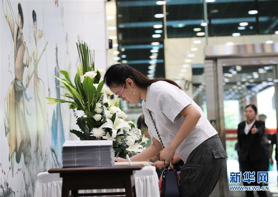 11月12日,读者在“金庸馆”吊唁册上留言。 著名作家金庸10月30日在香港逝世,享年94岁。他的丧礼11月12日在香港殡仪馆举行。为便于公众向金庸作最后道别,香港文化博物馆内的“金庸馆”12日至30日设置吊唁册,12日当天就有数百位读者及市民前去致敬缅怀。 新华社记者 吴晓初 摄