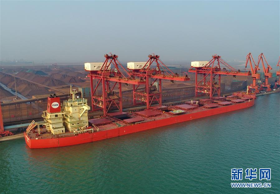 一艘轮船靠泊在唐山港京唐港区矿石码头(11月12日无人机拍摄)。记者从河北省交通运输厅港航管理局获悉,今年1至10月,河北港口完成货物吞吐量达9.5亿吨,同比增长4.3%。 新华社记者 杨世尧 摄