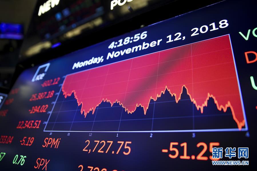 11月12日,美国纽约证券交易所的电子屏显示当日交易数据。 新华社记者 王迎 摄
