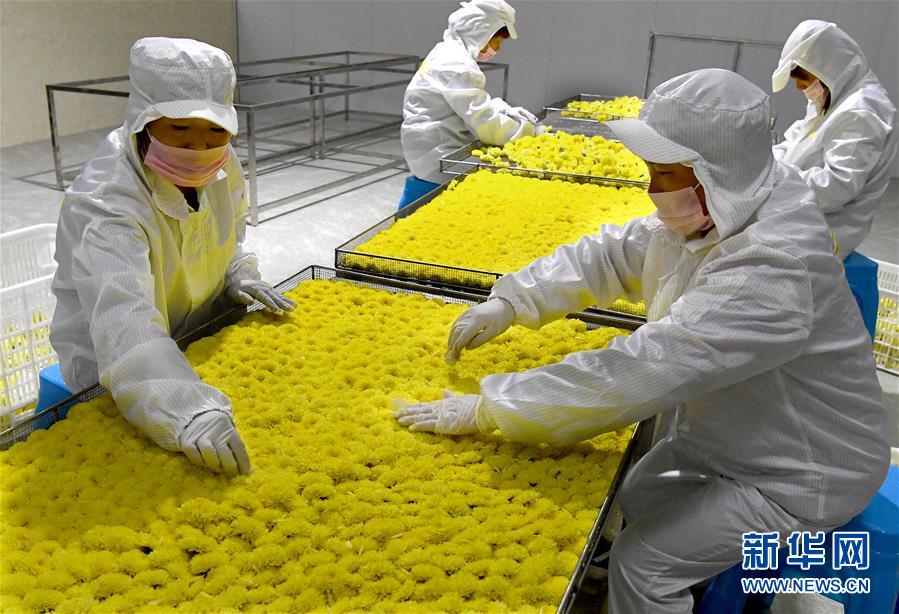 11月14日,河南省内乡县乍曲镇水沟村一家菊花茶加工企业工人在挑拣菊花。 近年来,河南省内乡县依托资源优势,把发展特色农业作为精准扶贫的重要举措,采取“公司+合作社+农户”的方式,招引农业龙头企业发展菊花种植产业,把菊花加工成茶饮、药材等高附加值产品,累计带动150余户贫困户就业增收。 新华社记者 李安 摄
