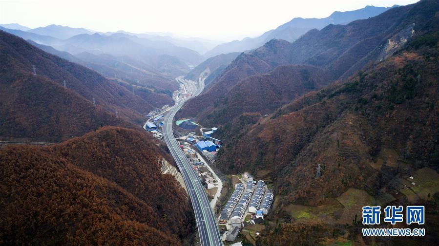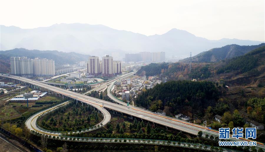 11月20日拍摄的水阳高速公路与福银高速公路相接的枢纽互通式立交(无人机拍摄)。 近日,记者从陕西省交通建设集团公司了解到,陕西柞水至山阳高速公路已全线贯通即将通车。据介绍,(柞)水(山)阳高速公路全长78.8公里,开通后将实现包茂高速、福银高速在陕南商洛地区的连接,开辟出秦岭南麓的一条横向高速大通道,对完善陕西高速公路路网结构、促进陕南区域经济发展、加快山区群众脱贫致富具有重要意义。 新华社记者刘潇摄