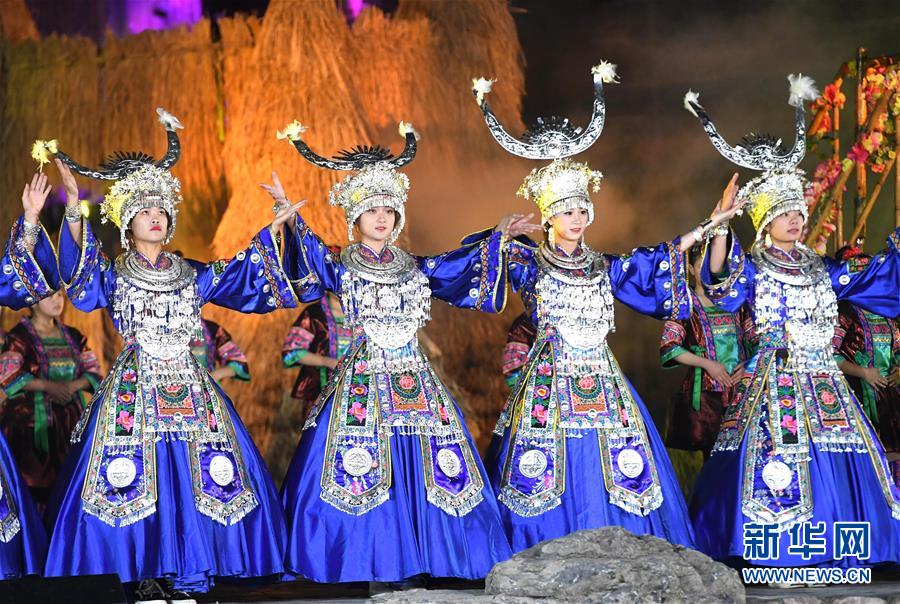 11月21日,演员表演歌舞《依依送客》。 当日,广西柳州市第一届旅游产业发展大会暨2018第十八届中国·融水苗族芦笙斗马节开幕式晚会在融水苗族自治县举行。 新华社记者 周华 摄