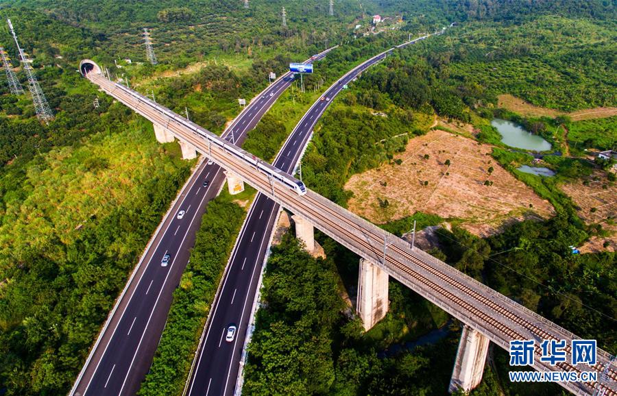 这是2016年10月11日无人机拍摄的海南环岛高铁东线三亚段。新华社记者 杨冠宇 摄