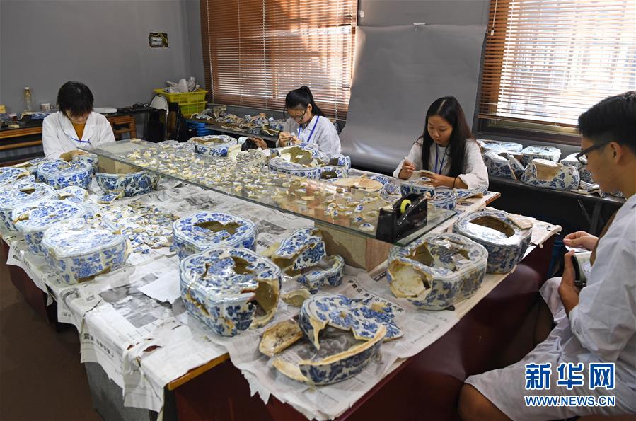 在江西景德镇御窑厂遗址,工作人员正在修复明代瓷枕(9月20日摄)。 新华社记者 万象 摄