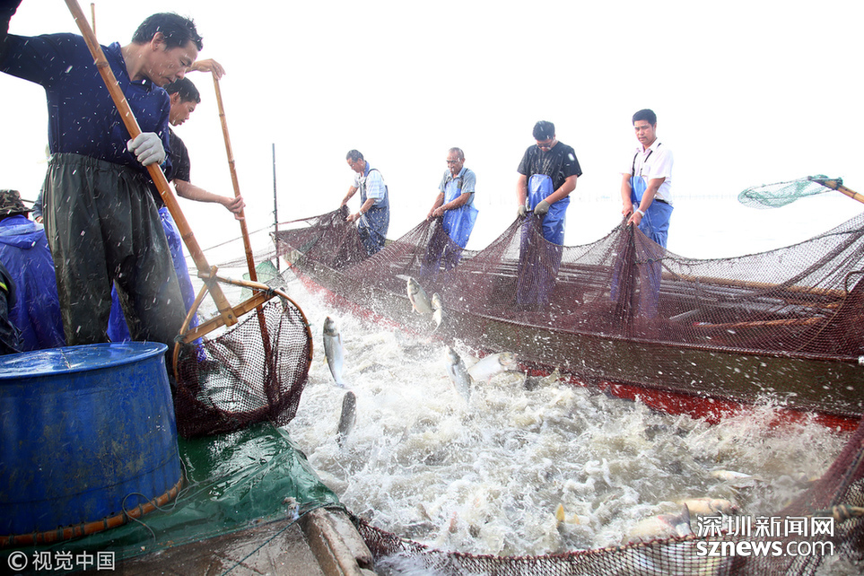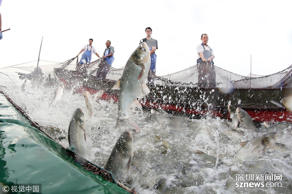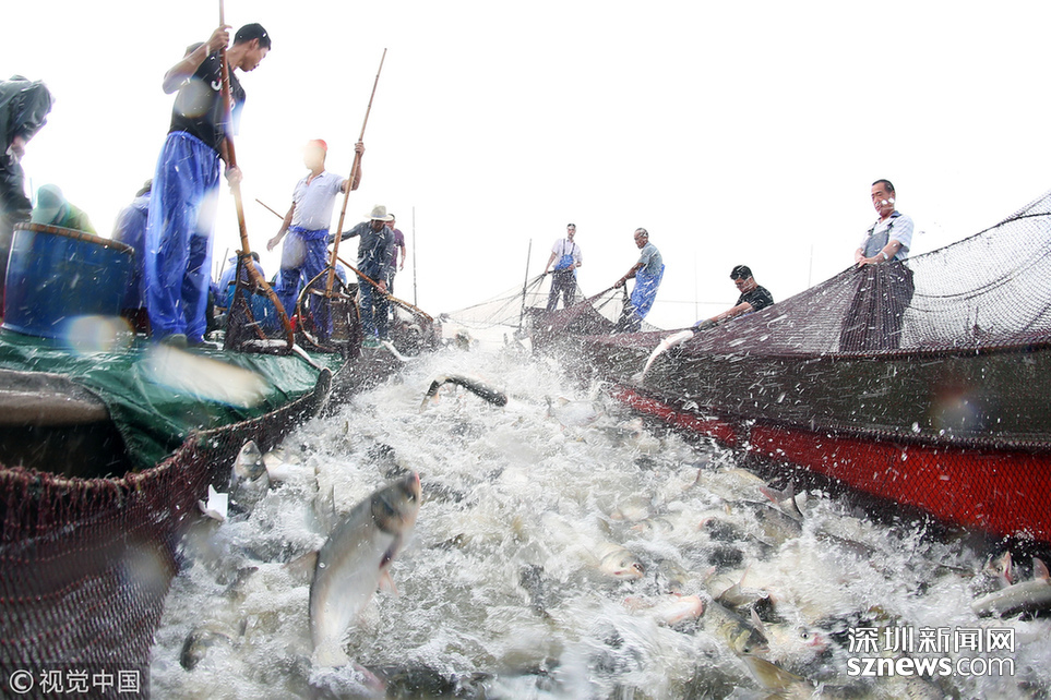 深圳新闻网讯  2018年6月26日,江苏省常州市嘉泽镇捕捞村的渔民组织夏季捕捞,一网鱼达五万余斤,以鲢鱼为主,供应市场需求。夏捕的鱼价较平时有所上涨,渔民粗略估计可增收上万余元。