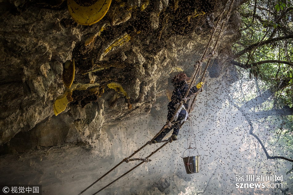 “最难采摘的崖蜜,是凹进悬崖内侧3至5米的那种。”两年来,小蕊亲自跟采了十几趟蜜,最怕遇到凹陷的蜜源。