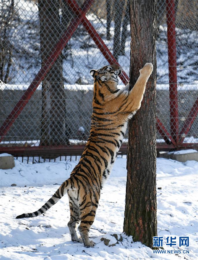 东北虎林园:老虎“换装”、“增膘”越冬