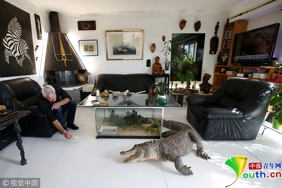 Philippe Gillet将短吻鳄从小养大,在家里允许它们肆意走动,就如同我们的家养猫猫狗狗一样。
