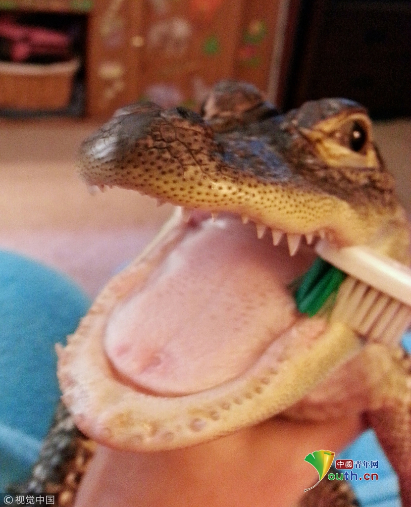 2017年3月5日消息(具体拍摄时间不详),据《每日邮报》报道,美国宾夕法尼亚州的安吉拉·兰斯(Angela Lance)爱鳄鱼如命,硬是把一只小鳄鱼养成大鳄鱼,照顾的无微不至。