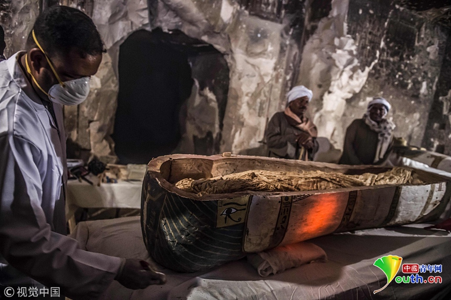 埃及卢克索挖出新墓穴 考古学家现场“开棺见尸”