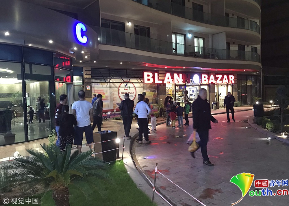 当地时间2018年11月25日,伊拉克埃尔比勒,民众在建筑外避难。伊朗西部克尔曼沙阿省25日发生6.4级地震。目前尚无人员伤亡和财产损失报告。