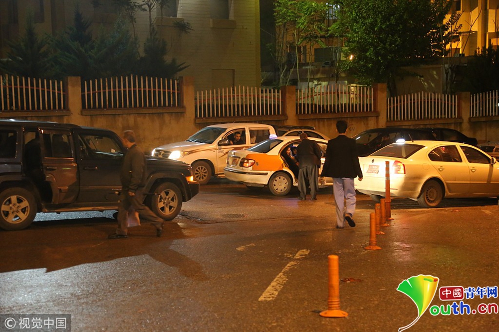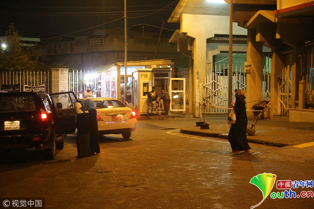 当地时间2018年11月25日,伊拉克埃尔比勒,民众在建筑外避难。伊朗西部克尔曼沙阿省25日发生6.4级地震。目前尚无人员伤亡和财产损失报告。