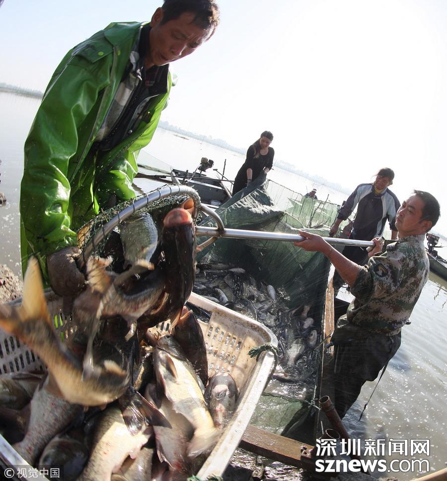 江苏扬州:天气转凉 捕鱼上市正当时