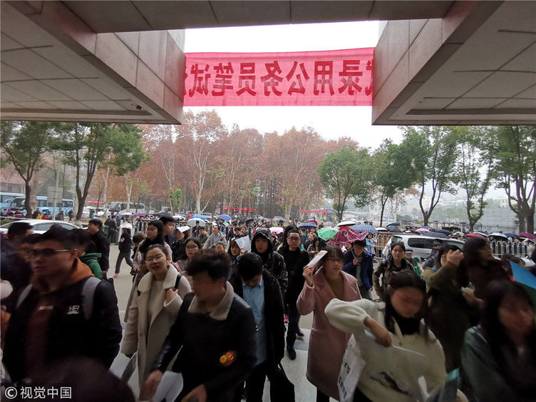 2018年12月2日,湖北武汉一公务员考点,密密麻麻的考生进向考场。当日,2019年度中央机关及其直属机构公务员招考笔试开考。楚林/视觉中国