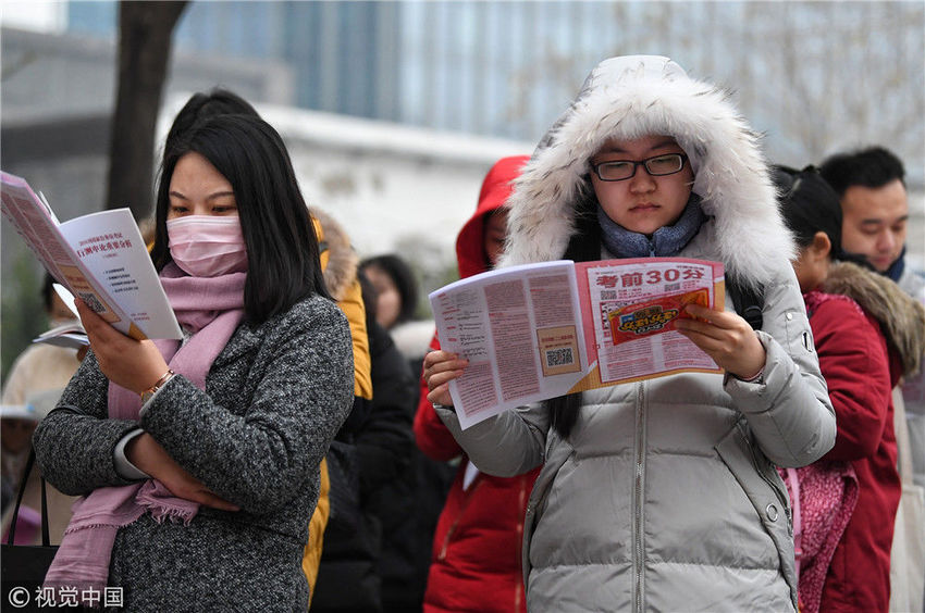 2018年12月2日,考生在南京林业大学考点进场参加考试。苏阳/视觉中国