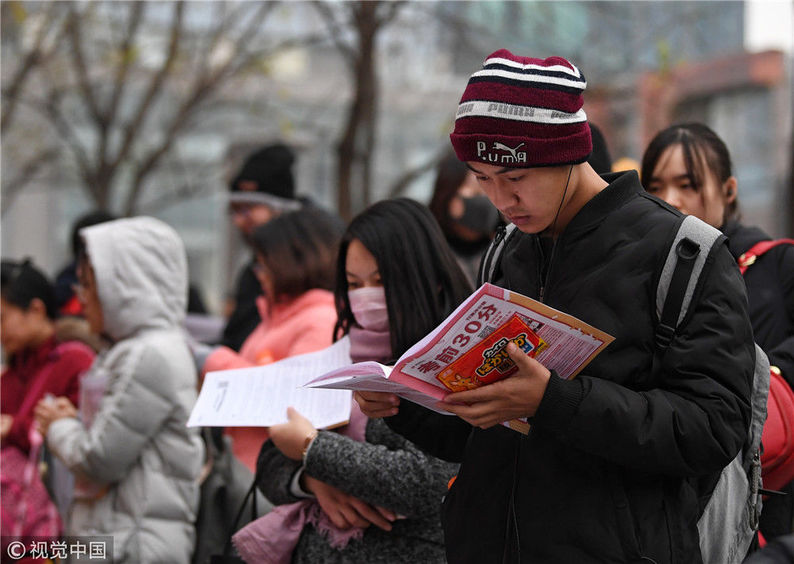 2018年12月2日,北京,在呼家楼中学考场,考生正在抓紧时间进行复习。北京青年报 郝羿/视觉中国