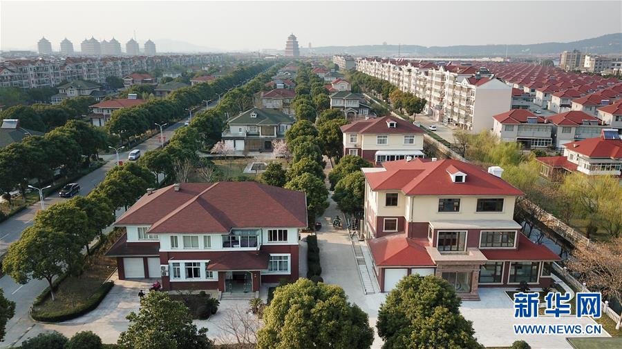 江苏省江阴市华西村村民住房(3月13日无人机拍摄)。 新华社记者 李博 摄