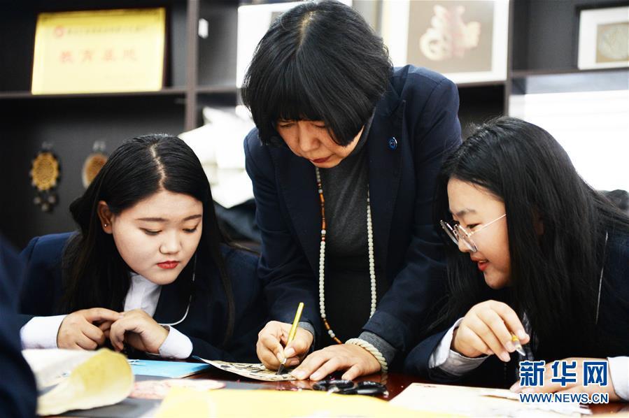 12月3日,张琳在哈尔滨轻工业学校讲授鱼皮画制作技艺。国家级非物质文化遗产赫哲族鱼皮制作技艺是我国赫哲族传统手工艺术。作为这项技艺的黑龙江省级传承人,十余年来,张琳一直从事鱼皮画的研究和创作,并通过做推广、开讲座、办活动,让更多年轻人了解并喜欢上这一传统手工艺,将这项濒临失传的艺术更好地传承下去。新华社记者 王凯 摄