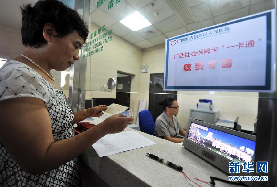 在广西壮族自治区人民医院,从北海到南宁异地就医的郑晓荣持社会保障卡在结算医药费(2015年6月30日摄)。 历史进步的背后,必有坚强领导力量的引领。 “坚持党的领导,全面从严治党,是改革开放取得成功的关键和根本。”习近平总书记总结改革开放40年历史和实践作出这一重要论断。 历史关头,中国共产党的关键抉择,改变了当代中国的命运; 宏伟征程,中国共产党带领亿万人民在改革开放实践中,实现历史性跨越; 面向未来,中国共产党肩负实现中华民族伟大复兴的历史使命,把改革开放继续推向前进。 新华社记者李斌摄