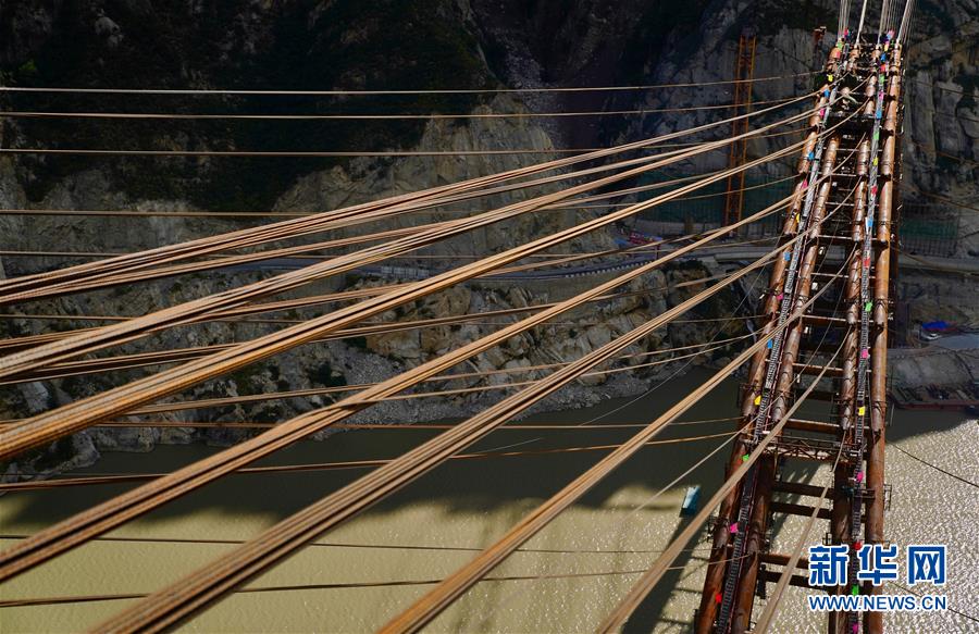 9月28日拍摄的川藏铁路拉林段重点标志性工程藏木特大桥合龙仪式现场。 当日,随着最后一节钢管拱的对位和锁定完毕,川藏铁路拉林段藏木特大桥成功合龙,标志着大桥主体结构施工取得了关键性胜利。藏木特大桥由中国中铁广州局集团承建,拱高112米,桥横跨雅鲁藏布江峡谷,水深66米。 新华社记者普布扎西摄