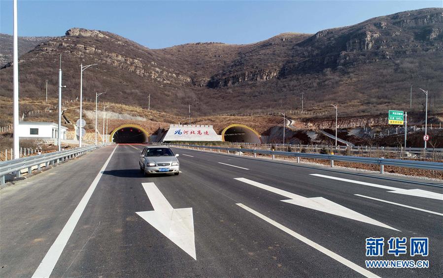 12月16日,一辆汽车行驶在京秦高速公路二期工程河北玉田境内的凤凰顶隧道路段(无人机拍摄)。 新华社记者杨世尧摄