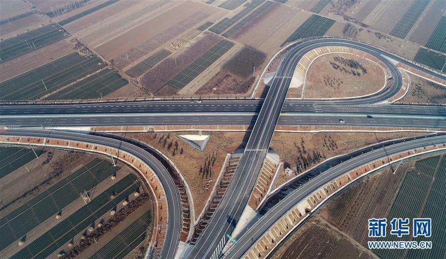 12月16日无人机拍摄的京秦高速公路二期工程河北玉田西进出口处的立交桥。 新华社记者杨世尧摄