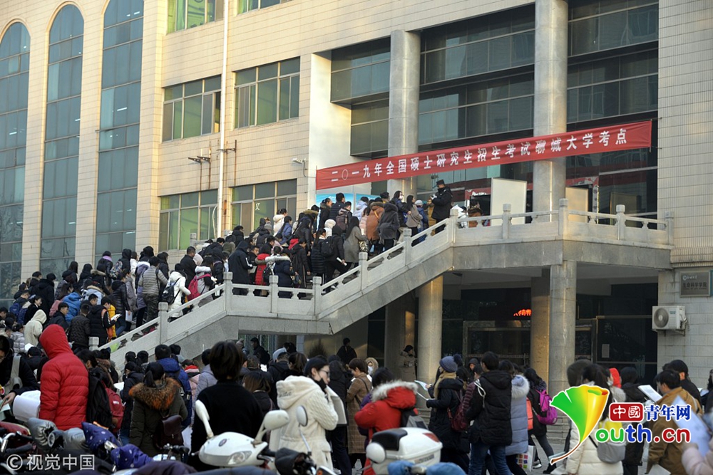 2018年12月22日,山东聊城,2019全国硕士研究生招生考试聊城大学考点,考生们在陆续进入考点。